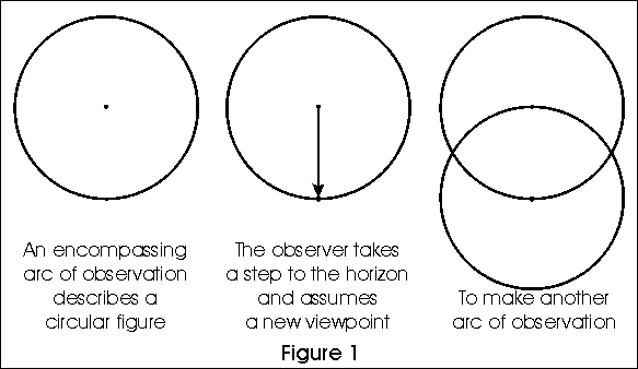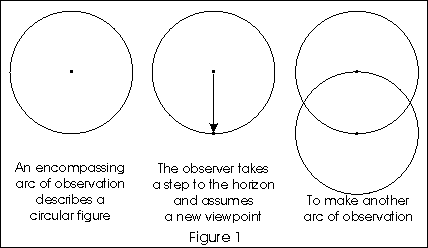 To see this connection, we need to get a good understanding of the Flower of Life. If we are to create the Flower we must first evolve the Seed, and to obtain that Seed we must go back to the most primal of all figures, the Circle. Actually, we must go back to before the circle was realized, and work our way toward a full set of dimensions. Along the way, we will learn how to count, or rather, we will learn how (..the emerging consciousness of) the One began counting, for this is truly the One Being's story of Self-Discovery. It all begins with observation, the opening of the I (the "Eye of the One"), and an arc of observation spanning what is observed. In the featureless expanse of the zero-dimensional universe there is no barrier to observation, but nothing to observe and therefore no basis for comparison or measurement. Ergo, a circle standing by itself has no particular size, or extent. Thus, it is seen that in the beginning we can have a complete arc of observation with no particular extent. It could be a point, or it could be an infinite expanse, but this figure can also be described as a Circle of radius One. There were no other numbers yet and "one" represents the first boundary between zero and infinity.