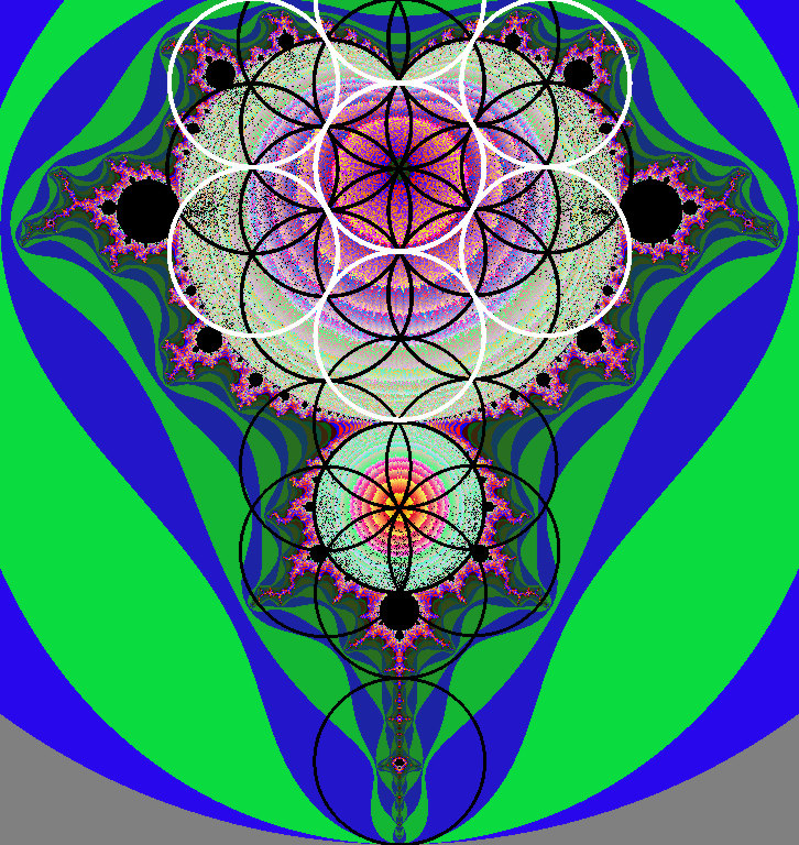 The idea that the Flower of Life gave rise to the Mandelbrot Set is more than a conjecture, but the proof for this rests on a number of assumptions. If we assume that the true zero-point is indeed a rather magical place, with a special geometry, we are in good company. If we assume that it's not really a point at all, but is rather a membrane of zero-dimensions, a zero-brane, we can describe it more accurately, and we are still in good company. Some of the finest minds alive today think that these concepts are key to understanding the origin of all. The fascinating thing about the descriptions they've evolved is that what Physicists and Mathematicians are saying now about the zero-brane agrees perfectly with what the sages have been telling us for centuries. Their pictures of the place of origin are remarkably alike. If non-commutative geometry is an attribute of the origin, however, we are left with a problem. How can anything ever get out? Having an observer provides us with a clear route, if that observer can move to explore. If we assume that observation and extension are possible, Sacred Geometry offers us a description allowing us to bridge the gap between an origin without measure, and measurability. It also gives us a means to develop the mathematical concepts necessary to evolve complex forms. If we take the steps required to manifest the Flower of Life, we arrive at a state where a number of basic attributes and operations have been developed, and taken in combination these make the emergence of more complex forms inevitable.